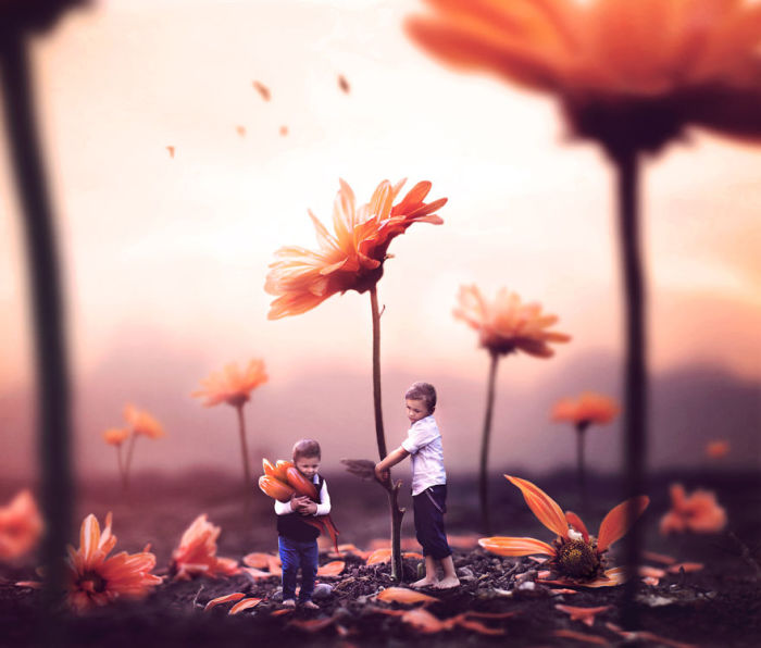 Габриэль Томойага является не только фотографом, но и отцом трех очаровательных мальчиков, все младше четырех лет. Именно сыновья вдохновляют Габлиэля на создание волшебных сюрреалистических фотографий, где мальчики смело гладят диких зверей, исследуют фантастический мир, мир возможный только для творческих людей.